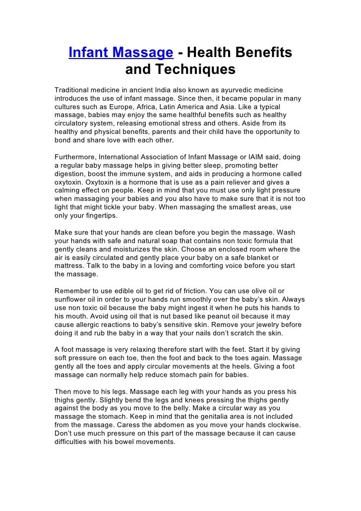 Read on to know more about the benefits of massage.introductionthe sense of touch has been detected in. A massage has many important health benefits. All that stroking and touching make it easier for you to bond with your. Giving your baby a massage is as simple as it is enjoyable.